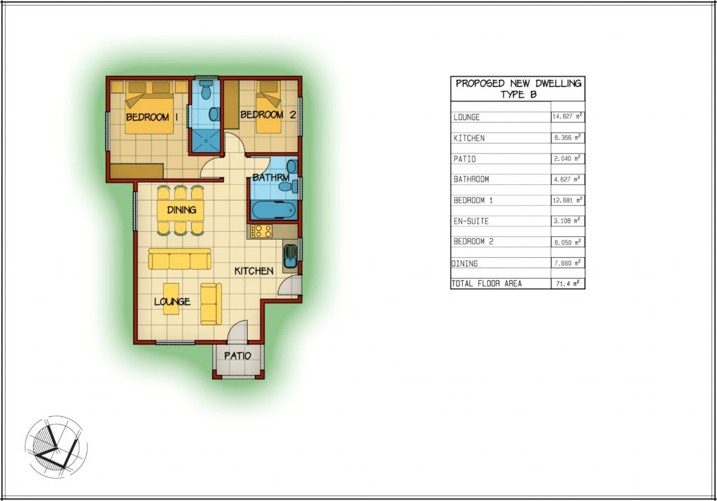 Concept of Ground Floor Plan 2 Bed unit B – 71.4 sqm